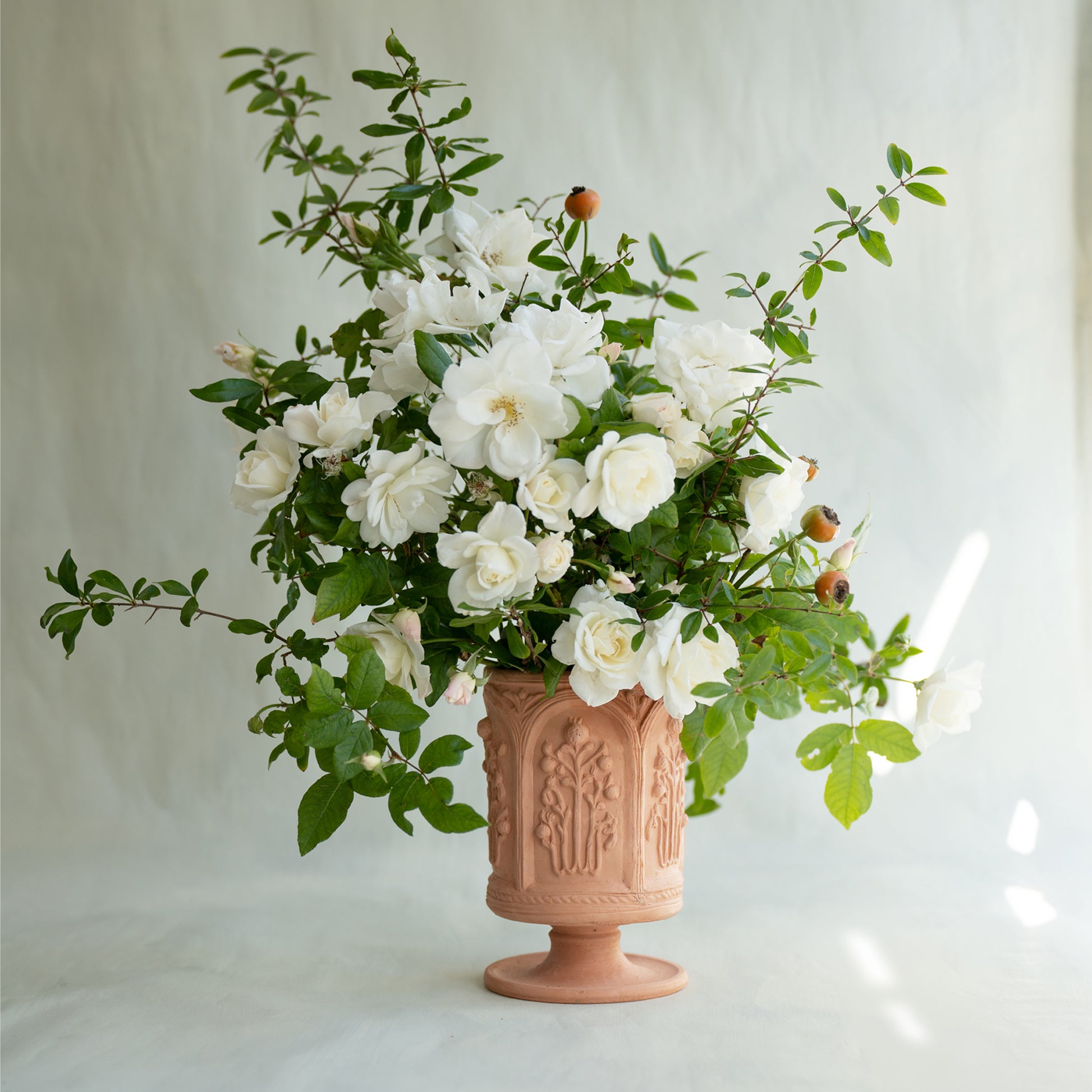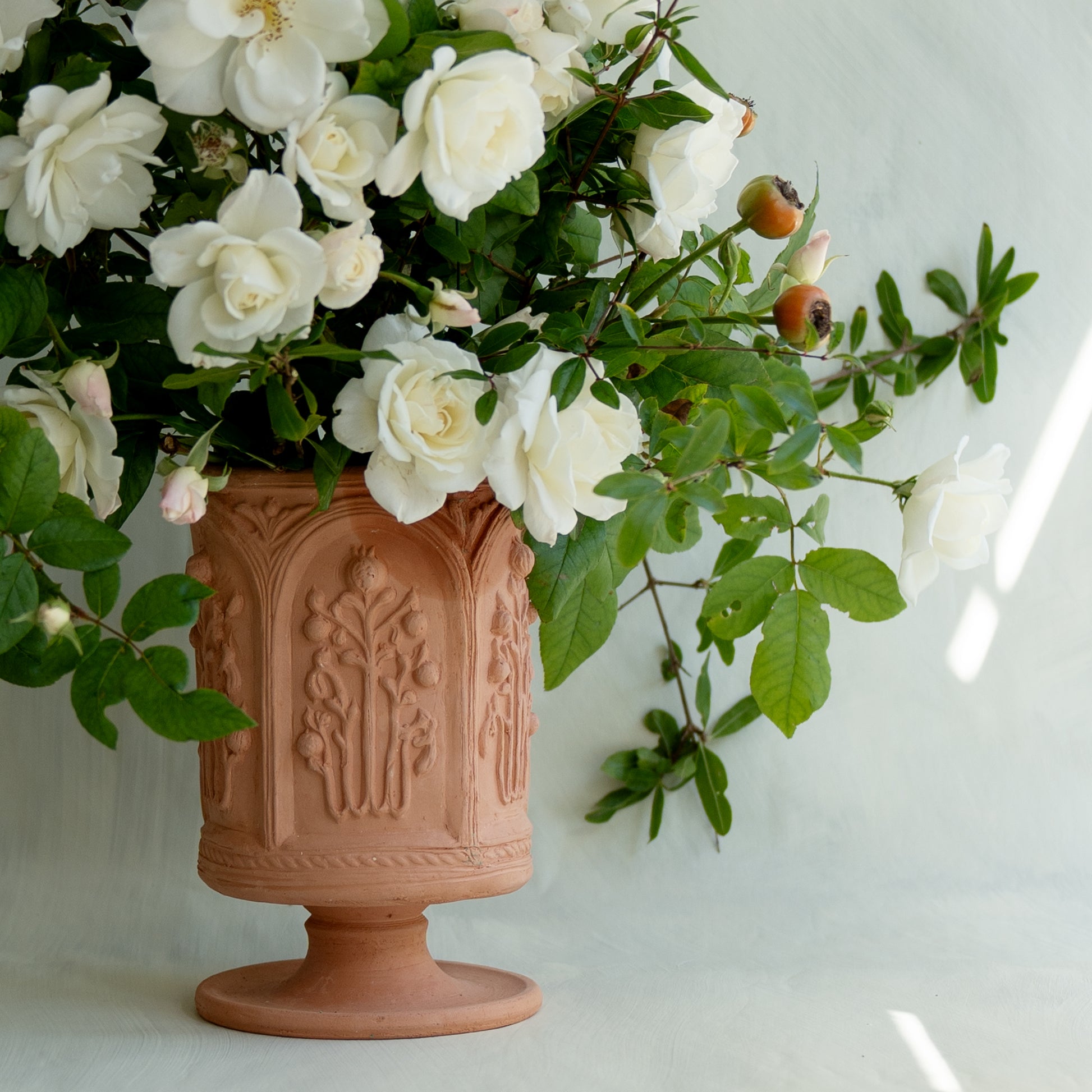 The Floral Folly Urn in Terracotta